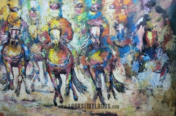 Abstract horse riders depicted in a blend of fluid shapes and bold strokes, symbolizing movement, freedom, and the timeless connection between rider and steed.